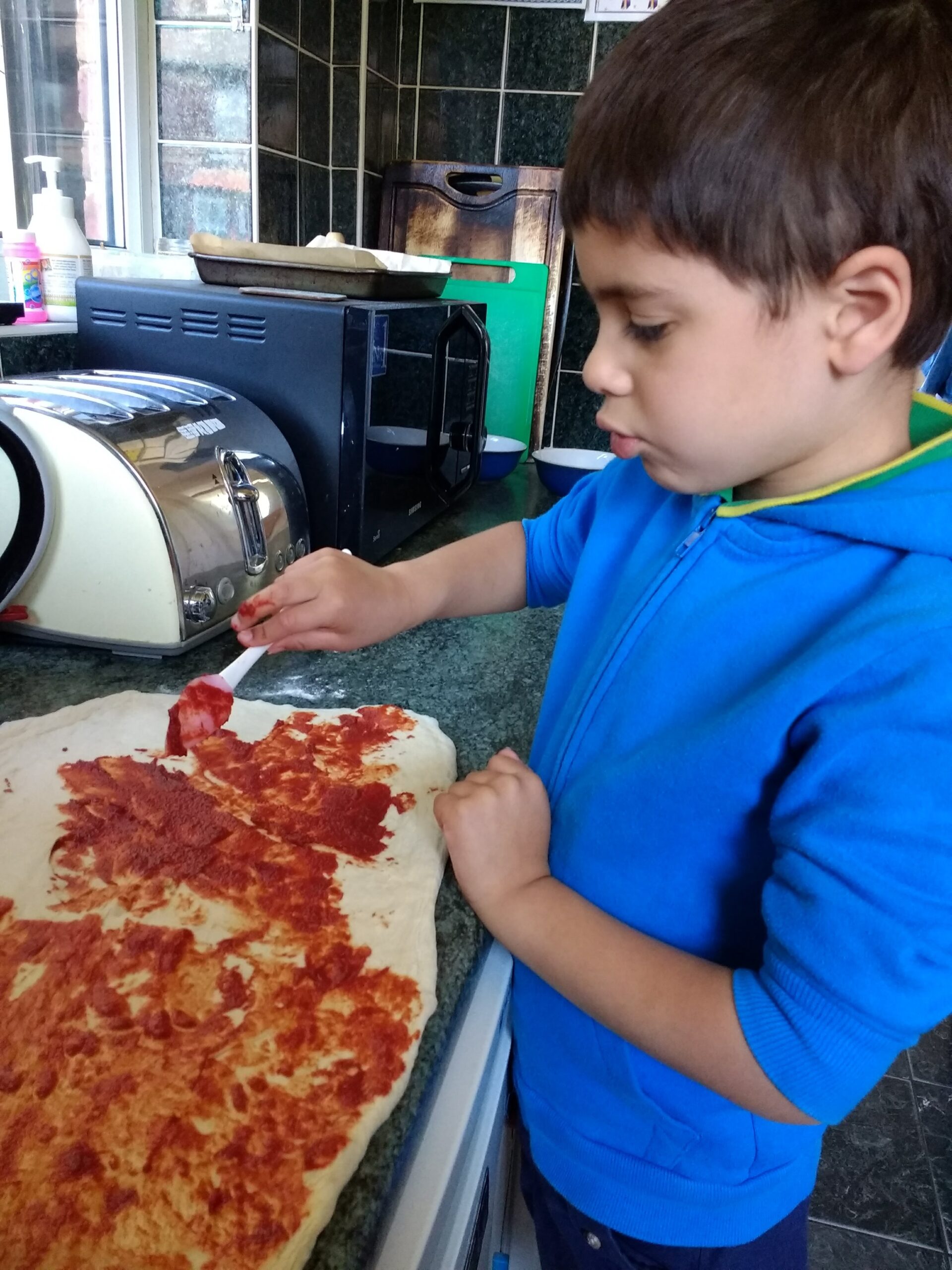 Some children will love to get messy, others will hate it. Find the activities which suit the child but don’t be afraid of gently pushing them to try to do something new. If they won’t stick their hands in the mince and onions to make meatballs, get them to help put the pre-made meatballs on a baking tray (a cold one!) ready for cooking.